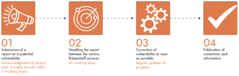 Once the correction has been published, the User may request that their vulnerability report be published. BUBENDORFF wishes to provide uniform advice to the Users concerned and requests the User at the origin of the disclosure to coordinate the public release with BUBENDORFF.